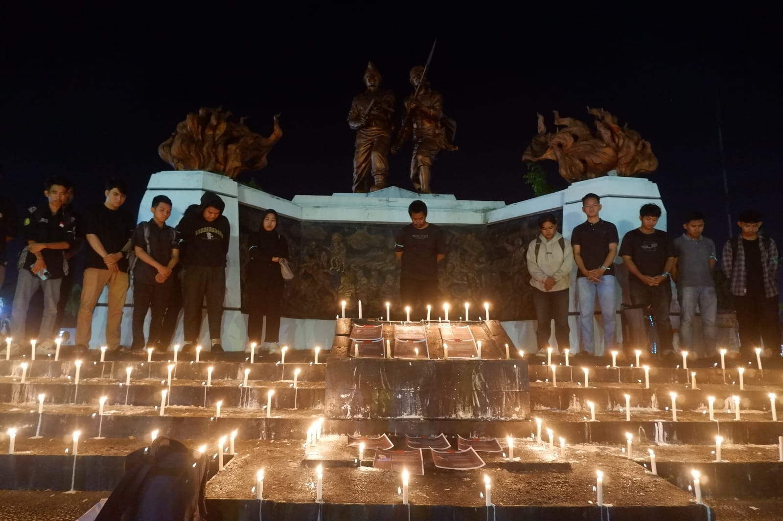 Perwakilan sipil menaja Aksi Lilin dan Kelas Penerangan bertajuk Ketika Negara Kian Gelap, Kita Lawan dengan Cahaya dan Suara. Kegiatan berlangsung di Tugu Perjuangan Jalan Diponegoro pada Kamis, 4 September 2025.