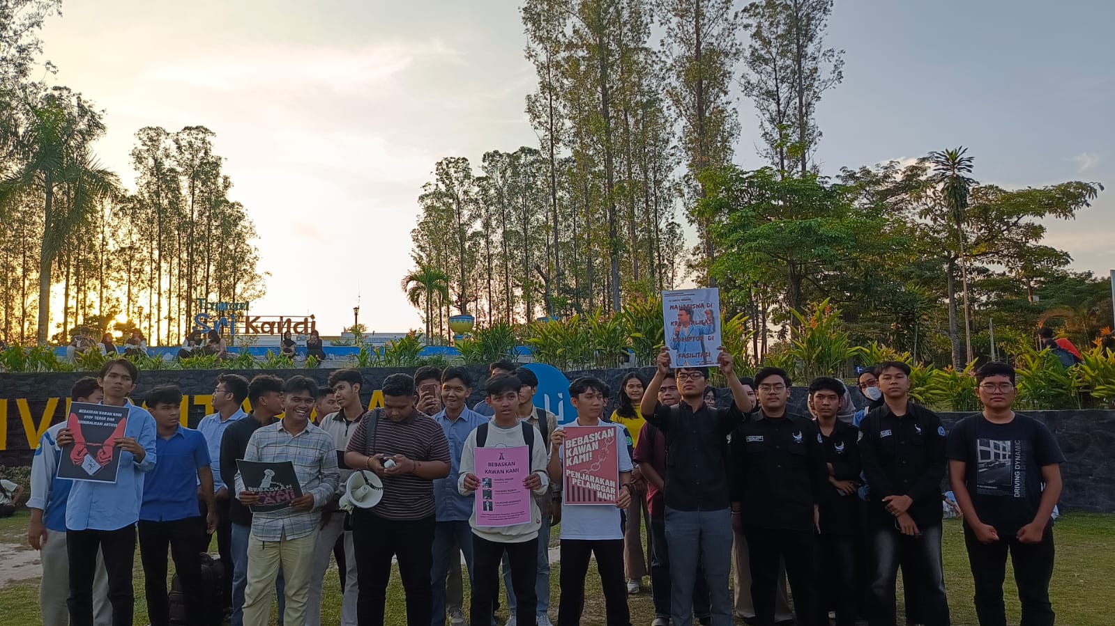Menanggapi kabar penolakan permohonan pra-peradilan Khariq Anhar, Badan Eksekutif Mahasiswa Universitas Riau (BEM Unri) menggelar Pernyataan Sikap Solidaritas. Kegiatan berlokasi di Danau Unri pada Senin, 27 Oktober 2025. Total sekitar 35 orang dari kelembagaan dan mahasiswa umum kampus biru langit ikut meramaikan aksi.