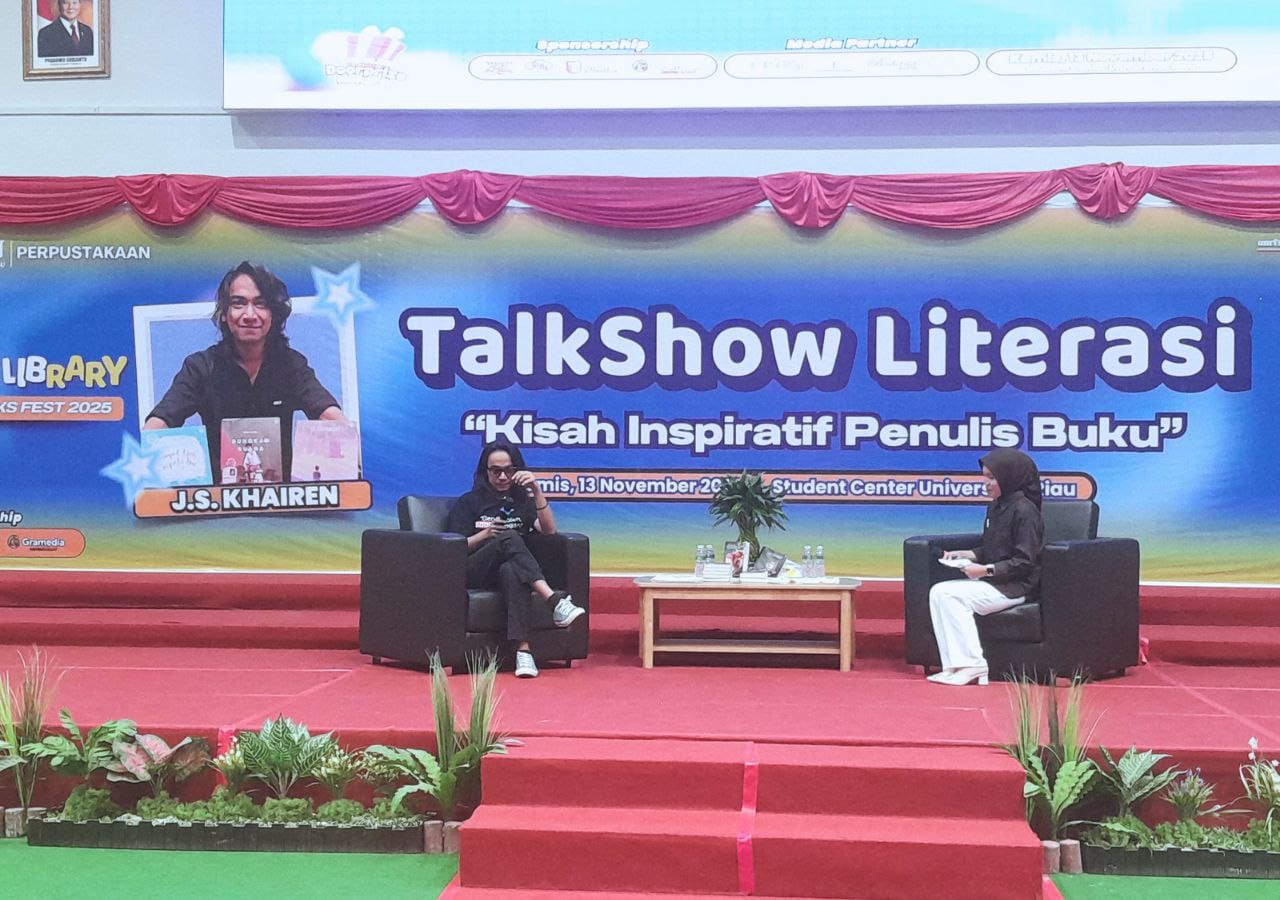 Perpustakaan Universitas Riau (Unri) taja Unri’s Library Art & Book Fest 2025 pada Kamis, 13 November 2025. Kegiatan bincang-bincang di Gedung Student Center ini boyong Jombang Santani Khairen, yang kerap disapa JS Khairen.