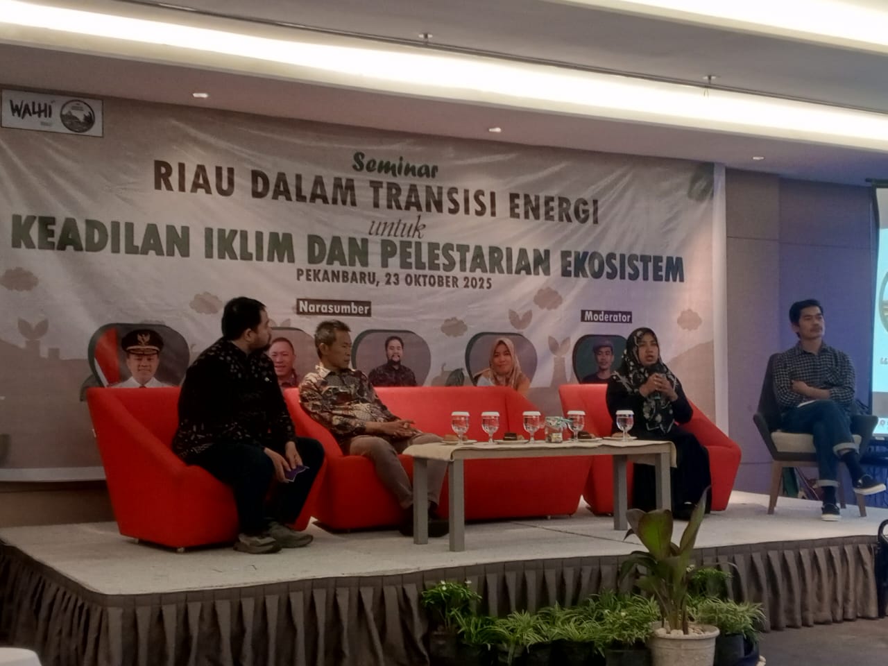 Wahana Lingkungan Hidup Indonesia atau Walhi Riau menggelar Pertemuan Daerah Lingkungan Hidup (PDLH) VII. Kegiatan terbagi menjadi dua sesi, Seminar Publik Riau dalam Transisi Energi untuk Keadilan Iklim dan Pelestarian Ekosistem dan Peluncuran Laporan Penelitian Ada Noda di Bajumu: Rangkaian Dosa Ekologis Perusahaan HTI di Tanah Riau. Acara berlangsung di Fox Harris Hotel, Jalan Riau pada Kamis, 24 Oktober 2025.
